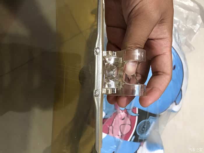 卡扣与镜面连接处为两颗细小螺丝固定,卡扣为普通塑料制品,第一感受就是很脆弱的样子,毕竟原来使用过类似的物件都是容易折断