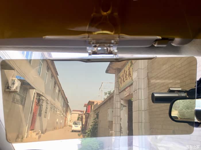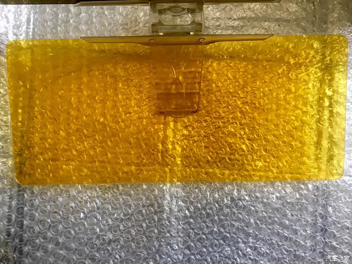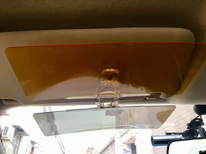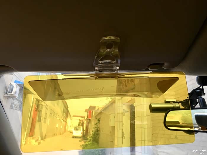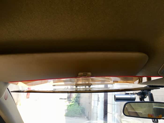 防远光黄色镜片白天的效果,晚上效果会稍候补上。仔细看安装上后左低右高。而且安装上后原车遮阳板就不能折叠使用了。减分项。