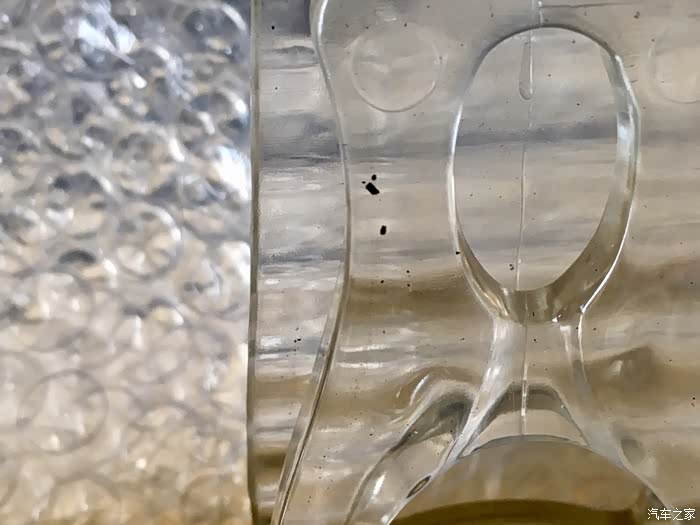 放大看一下,这是在制作时进入的脏东西,这说明用料真的很不讲究。这个也是减分项。