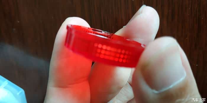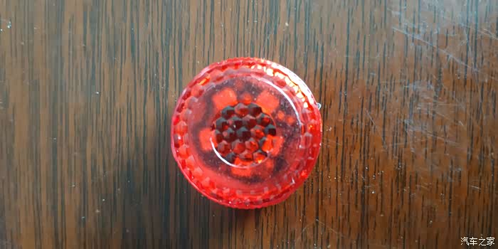 拿出来看看,灯是这样式的,一个红色的塑料壳子,看着做工很拙劣,用料粗糙。