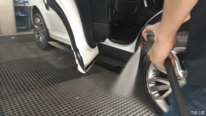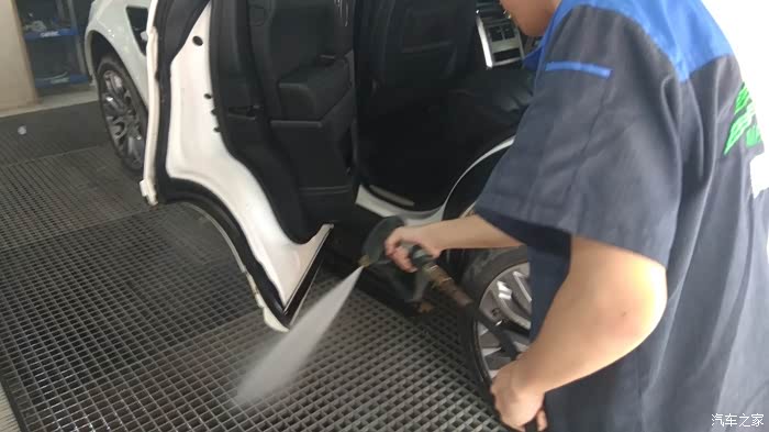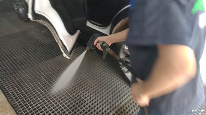 车门脚踏板内侧边缘冲洗还得小心,不能冲入车内,这就是手的技巧 。
