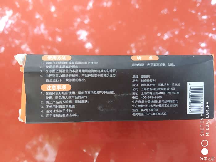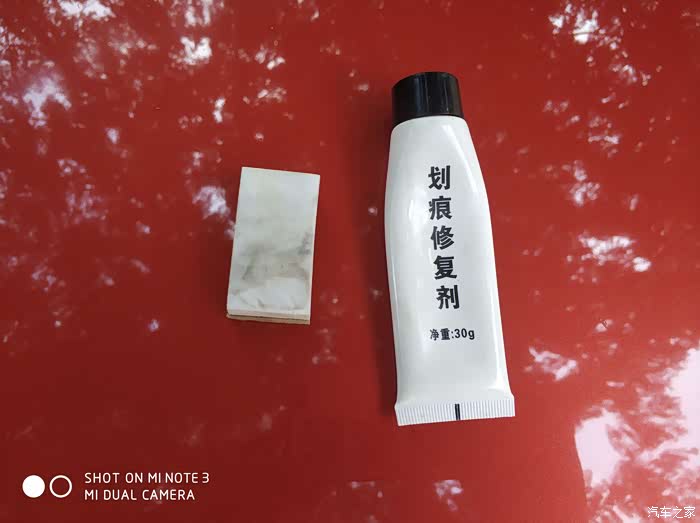 刚好引擎盖上也有划痕, 也擦一擦, 可以看到, 擦过的部位, 有一种油腻的感觉,但是没有刺鼻气味,应该没有什么毒性。