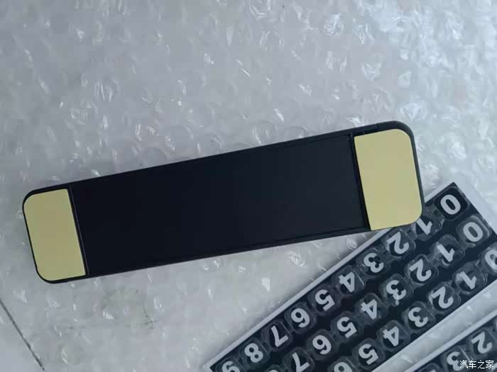 一起来欣赏一下这次的奖品吧,临时停车号码牌。尺寸:130mm*33.3mm*15.6mm,采用弧形滑槽设计,方便隐藏/显示电话号码。分部件组成的,两头可以暴力拆开,拆之前要把底部的胶取掉,拆开之后方便更换号码。整个都是塑料制品,滑槽很松,颠簸路面槽板会滑落,如果稍微加点阻尼感觉会更好。附带了六组号码,满足常用的电话号码需求。