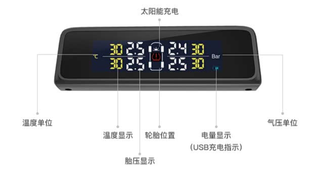 3.有效的解决了间接式胎压报警的缺点,就是不显示胎压和具体的轮胎的弊端;