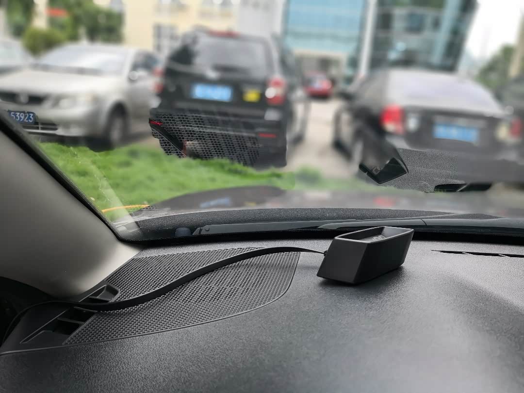 选择放置显示器最佳位置后顺线路将连接线放进仪表盘缝隙及A柱密封胶胶内隐藏好