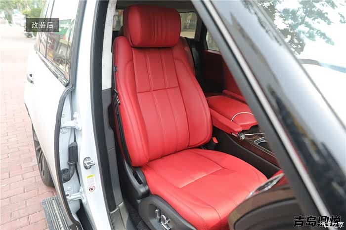 方向盘容颜换新,包覆真皮之后,速度与激情!安装后前排视觉效果,充满激情与活动,有带有一丝妩媚!让揽胜在豪华的定位上呈现出别具一格的风味!