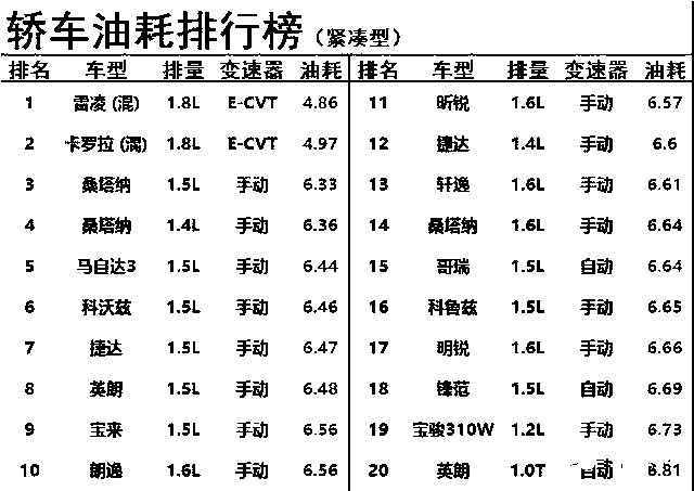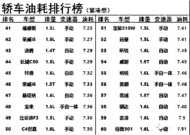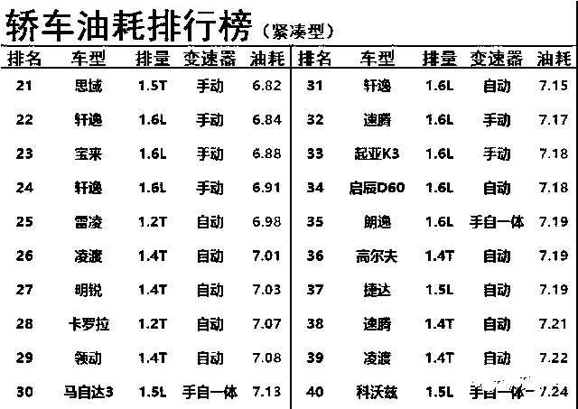 因此,根据相关的报道,有网站就制作了汽车耗油量的表格,表格仅供参考,毕竟真实的耗油量跟实际的路况有很大的关系。我们就找几个比较火的车型来简单分析一下。首先是,近来卖的很火的大众捷达,捷达1.5L手动车型排名第7位,它的油耗只有6.47L,作为大众品牌旗下的一款入门级车型,大家之所以选择捷达也是看中了它这一点。而另一款捷达则排名第12位,这款1.4L的捷达并不是其最畅销的一款,毕竟作为家轿,1.4的排量还是不太够的。捷达自动挡车型排名第37位,百公里油耗达到了7.19L,自动挡车型能有这个油耗也算不错了。