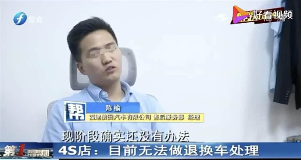新车成了事故车,这已经让郭先生十分头疼,但4S店提出的解决方案让郭先生更加气愤。原来当时4S店给出两种解决方案,第一种是店方将将车子修好,再赔偿2000元。而郭先生原来换新车的诉求,4S店表示没办法做到,因为4S店表示他们不是第一责任方。第二种是4S店和车主应一起向造成这起事故的拖车所属的救援公司索赔。但这样的说法,郭先生显然不接受,郭先生认为车子还没交付,4S店要做好保管工作。