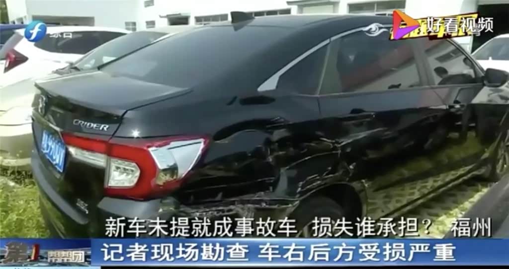 据媒体报道,福州的郭先生在福州市广汽本田信田4S店购买了一辆本田凌派轿车,共计花费12万元。但就在等待提车的过程中,被4S店告知,他的这辆新车出了事故。新车右后方受损严重,并且轮胎、轮毂、车门、叶子板及尾灯都出现不同程度受损。