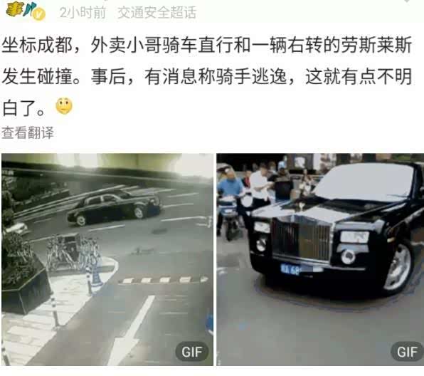 外卖小哥撞千万劳斯莱
