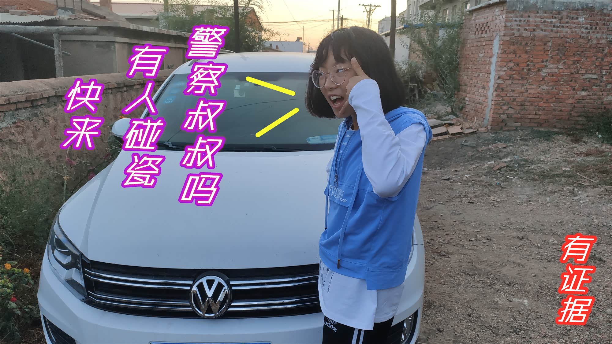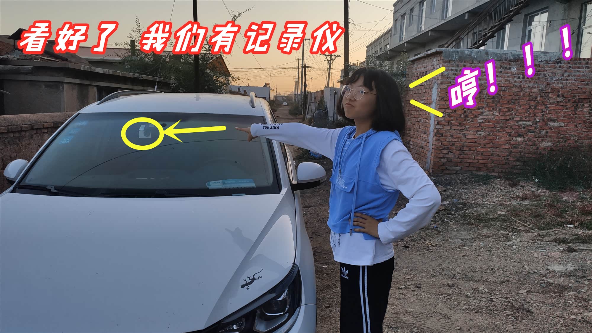 哼!我们还要去溜达呢,不要耽误我们,再说了,你快看看哪里是什么,你难道都不懂得要看一眼车辆有没有行车记录仪吗,不怪你还在碰瓷,连我也个中学生都不如。