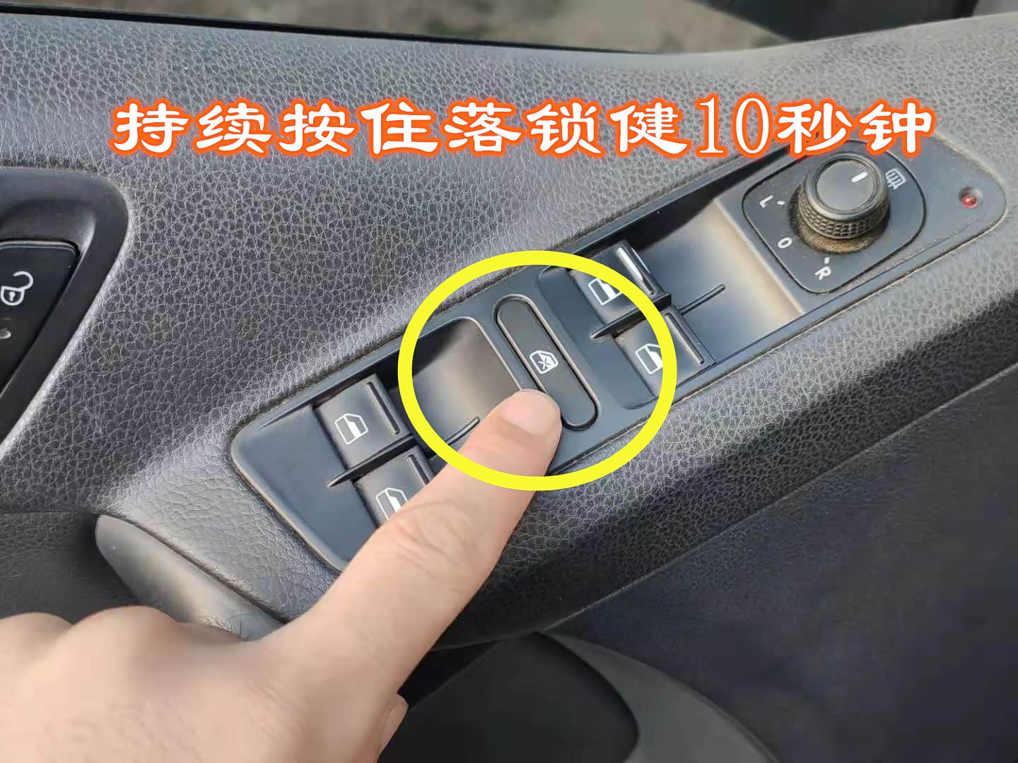 (二)找到您爱车的车辆车门落锁健,用手指按住落锁健,持续时间倒数10秒钟,记住这之间不要松手,持续对锁车键按压10秒钟之后,松开按键;