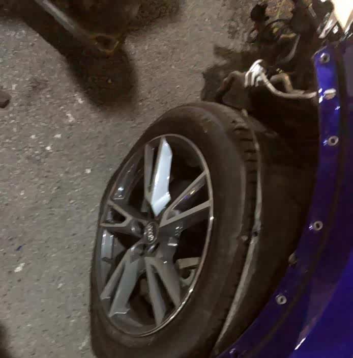 在空调问题解决后,艾女士的车又出现了问题。9月12日,艾小姐驾车行驶时遭遇车祸,汽车直接冲过栏杆与对向车道的两辆汽车发生碰撞,所幸事故并未造成人员伤亡。艾女士描述事发时感觉车辆方向盘被锁住,踩刹车也没任何反应。
