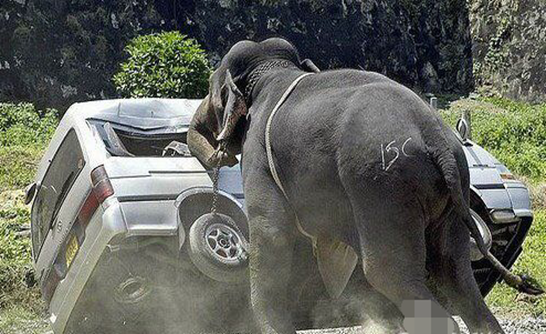 我投降啦,大象大哥,别和我比武,你是第一,快用鼻子吧我勾起来!