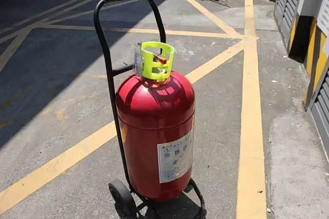 如果起火点将爱车点燃的话,那么火势必然会迅猛。此时,我们使用手提式灭火器灭火,就有些不足了。在加油站一般都会设计有更大型号的灭火器,他们一般会放置在加油机不远处。在发生较大火势时,我们使用这种大号灭火器进行灭火。