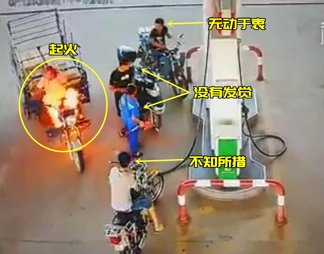 就在2019年6月,吉林某事的一个加油站内,一名骑着三轮摩托的车主在加油后,由于汽油有部分洒落在排气管上,导致火灾发生。而就在正果过程持续了10秒钟之内,竟然没有一个人采用正确方法进行灭火,最终导致车主重度烧伤。