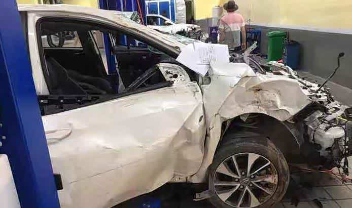 整个车身不管是车头还是车尾都出现了不同程度的损坏,车头最为严重,可以说已经面目全非了,而车身的话,因为翻滚的原因,所以也有变形的情况,甚至发动机舱都快要粉碎了,好在驾驶舱还能保存完好,这也是车内人员并无大碍的最大因素,不过也有让人无语的一点,那就是这辆车都撞成这样了,车内安全气囊却一个没爆,不知道各位看到这一点觉得正常吗?
