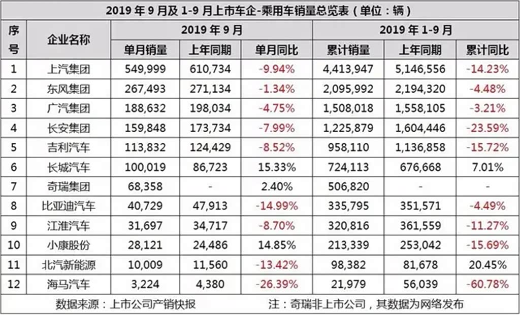 从各大车企9月销量快报显示,不仅是单月销量同比还是累计销量同比都出现普遍下滑,仅两家车企9月实现同比增长,最亮眼的可谓是长城汽车,单月同比暴增15.33%,累计同比增长7.01%,不仅是逆势增长更是众多车企中唯一的双增长。即使国内最大的车企,上汽集团也出现近双位数的下滑。