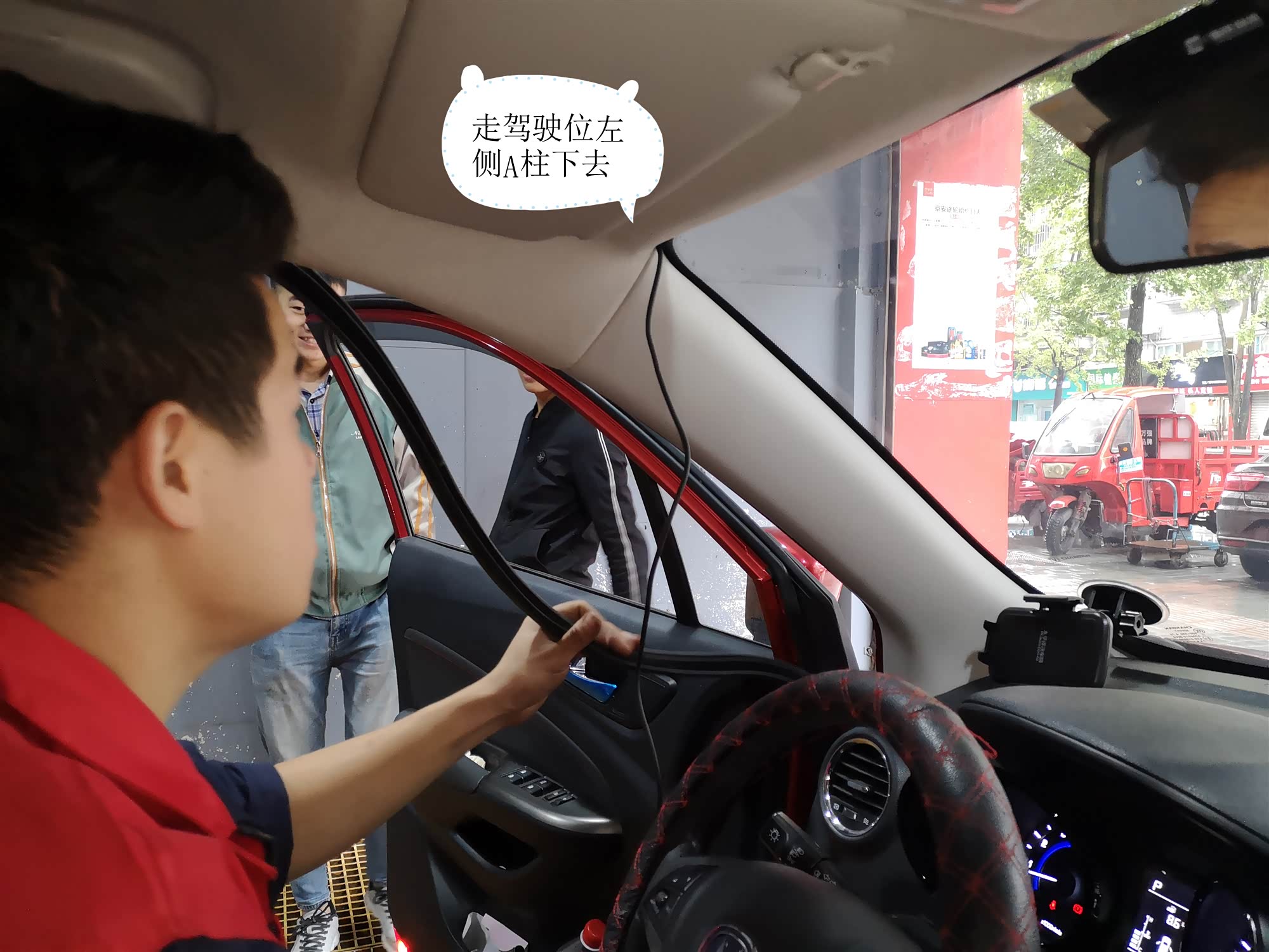 撬开内饰壳子,和门框胶条,埋进去。