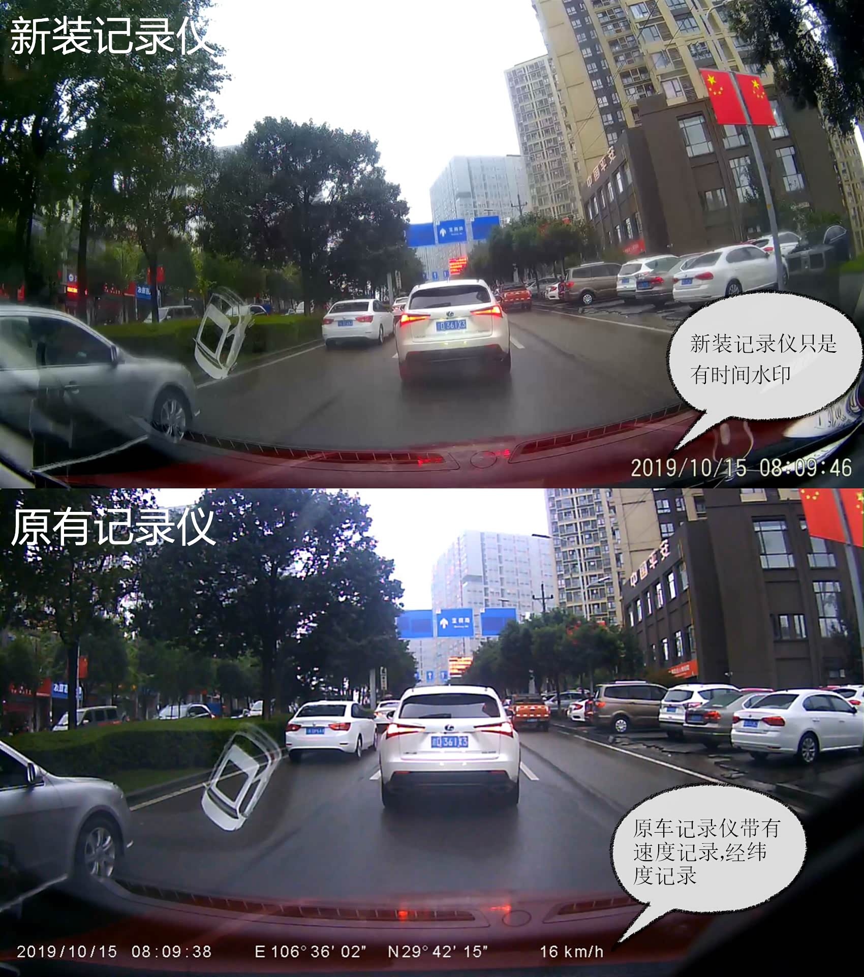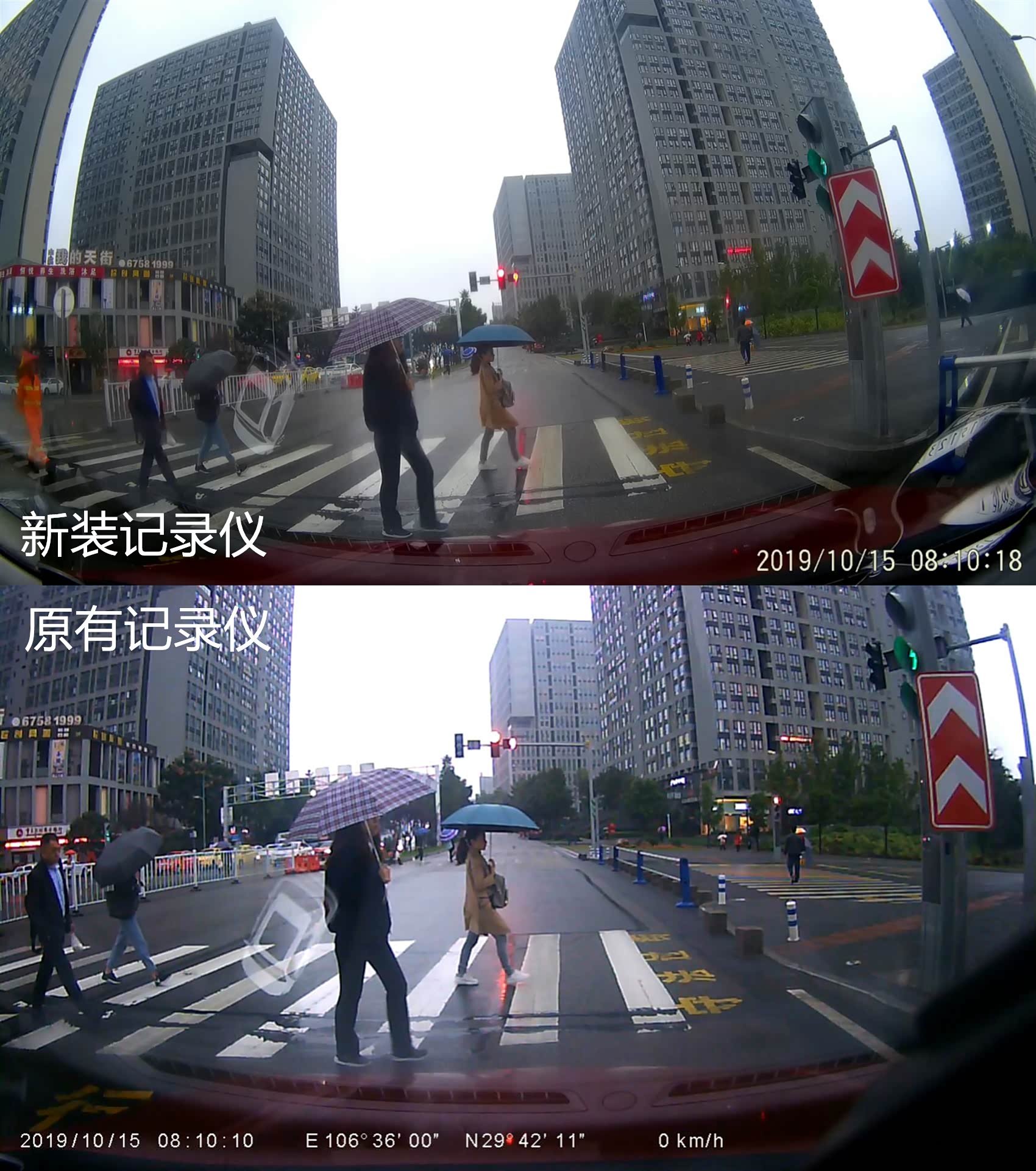 横屏对比可能不太明显,我又采用竖屏对比。基本是同样距离,新装记录仪在白天的画面效果还会有一点发黄。
