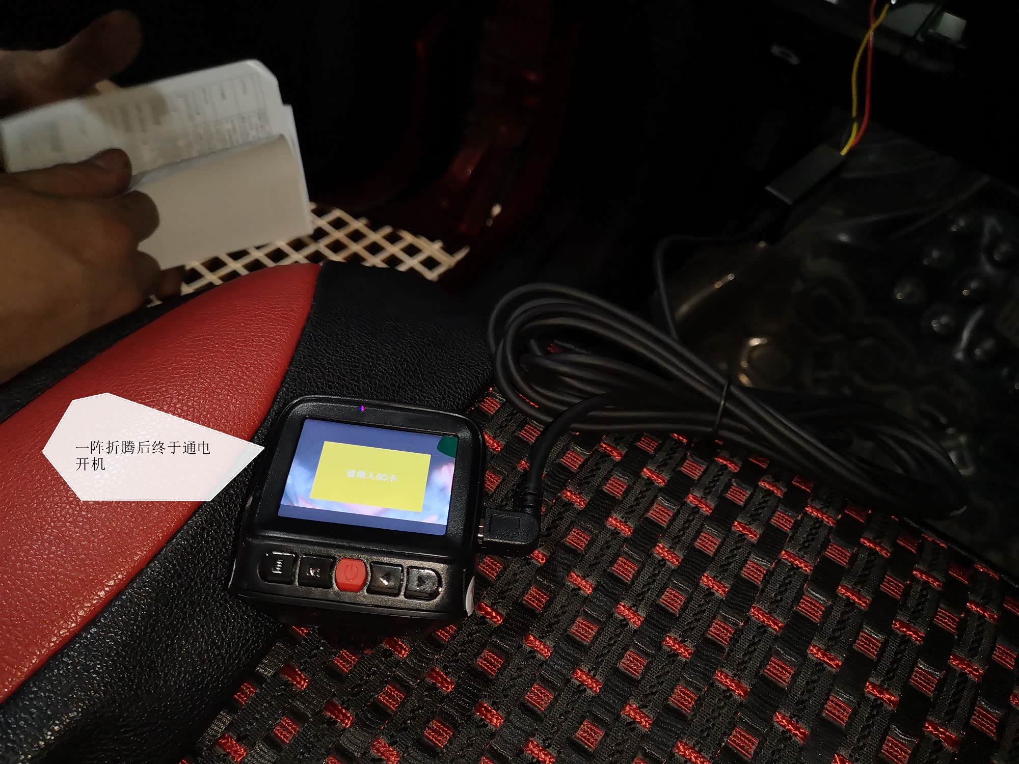 主要我就是对插保险盒具体哪个针位不明白。安装完成后赶紧开车到外面转了一下。重庆这两天阴雨绵绵,到了夜间视线是极差,一片漆黑,非常考验记录仪的夜间夜视能力。而我原有第一款记录仪也没有拆掉,同时两款记录仪同时工作记录,对比画面,视频看看到底差距明显不明显。具体的两款记录仪的同时画面对比在本帖最后,同时间同地点,夜间,白天,静态,动态。都有对比。具体看文末图片展示。感谢大家欣赏点评!上图为开关按钮,开机录制视频,时间是我已经重新设定了。