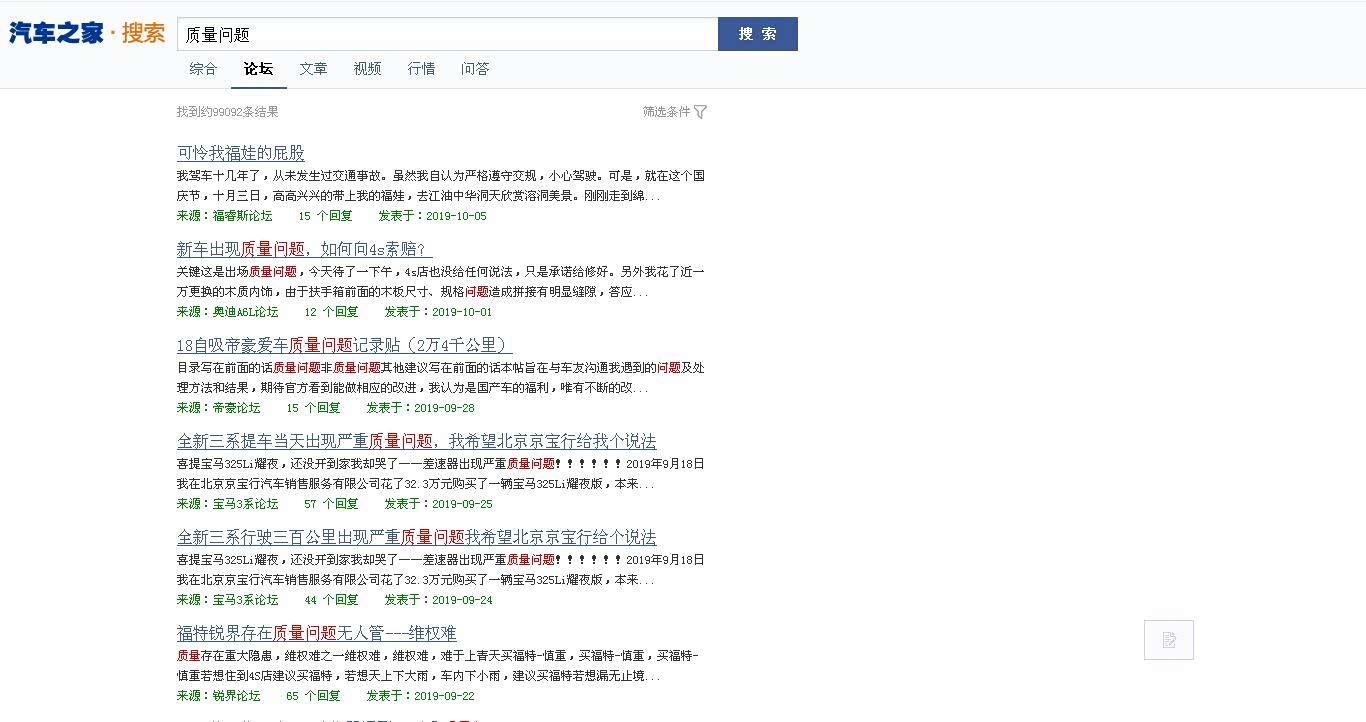 如果质量问题我们有一手的故障证明,而且经销商处理事件态度推诿、傲慢。我们可以将这些证据公布在一些汽车论坛上。论坛的浏览量很大,很多厂商都会有专门的部门进行跟踪,一旦发生异常,厂商会协调帮助解决。