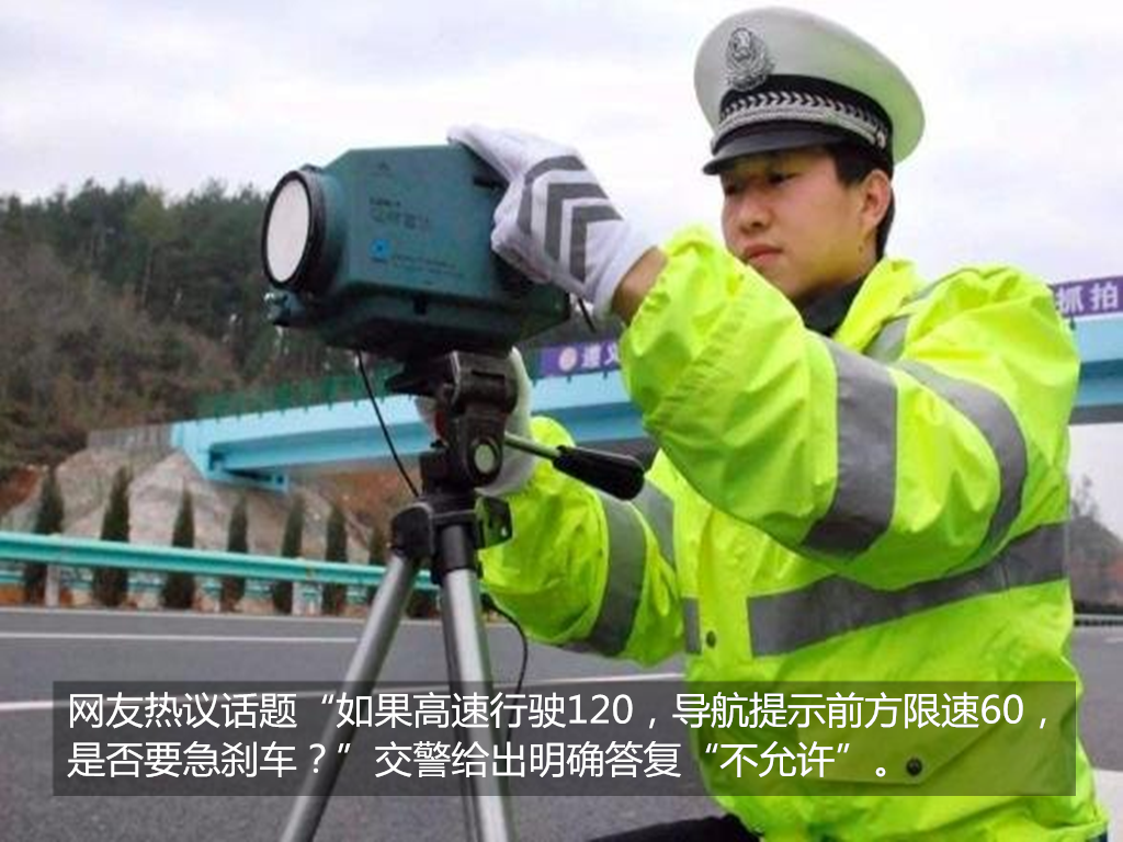 这时也有网友提问:“如果在高速跑120,突然提示限速60要急刹车吗?”交警给答案很肯定“不允许”。