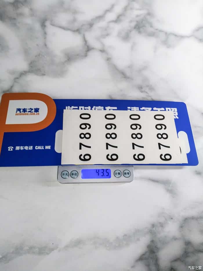 汽车之家的这款挪车牌首先大小合适,非常醒目,不会让别人找半天。另外配备的数字数量足够,除非你是八连号或者九连号的土豪。挪车牌的材质并不是纸张的,二是塑料的,可以折叠而且耐用。如果是纸张的很快会弄坏,而且折叠后再使用会有痕迹很不美观。不过这个挪车牌也有个缺点,就是电话号码是贴到挪车牌上边的,如果换了电话号码是很难撕掉重新贴上去的。