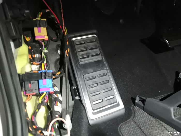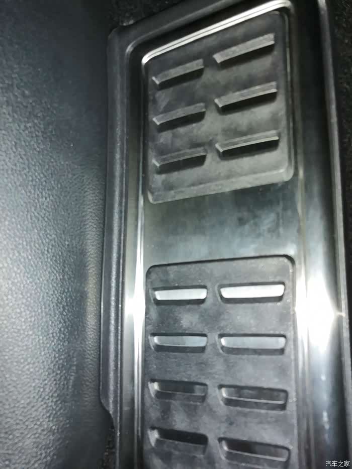 最后一个项目是油门踏板,也是三个踏板中看起来最简单,实际最困难的一个。说明书上说从踏板上方边檐的两个安装口套入原车踏板直接网上滑入到位。好吧,你说的没错。但是你要保证原车踏板的四个边角完全套入运动踏板内,真TM费劲,在我付出手指一条口子,二两汗水和差点扭伤老腰的代价后,终于装上了,至于过程嘛,我就不说了。不是不想说,是真不知道怎么描述,有条件的车友,可以用热风枪把运动踏板上方两个角的胶皮吹热变软,没有的朋友就和我一样,使劲掰吧。
