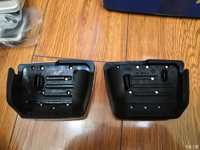 说句实话,我也无法证实这套踏板就是一汽大众的原装附件,咱也没买过一汽大众的车,不过从外观上对比,这套踏板的做工比我以前买的山寨货要强得多。左为以前买的山寨货,右为本次购入的套件。