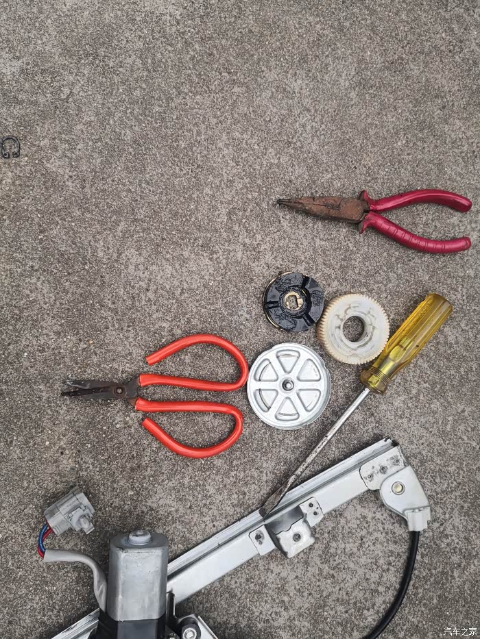 就是这个里面的齿轮要更换,外面的圆形盖子撬开,再就是中间这个卡簧拿掉,我是用尖嘴钳拿的,费点劲。