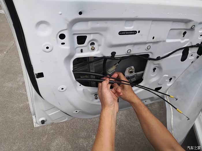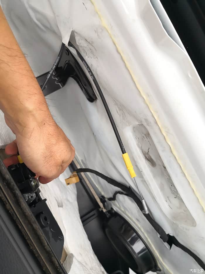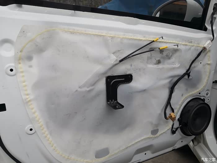 用了一个多小时,攻略已有其他的车友说过,但实际操作下来还是碰到些问题,自己摸索些完成,没有拆门之前的样子,看到我玻璃升的高度了吗?我是直接用胶带贴牢的,其实高度太高了,要再降10公分更好操作。