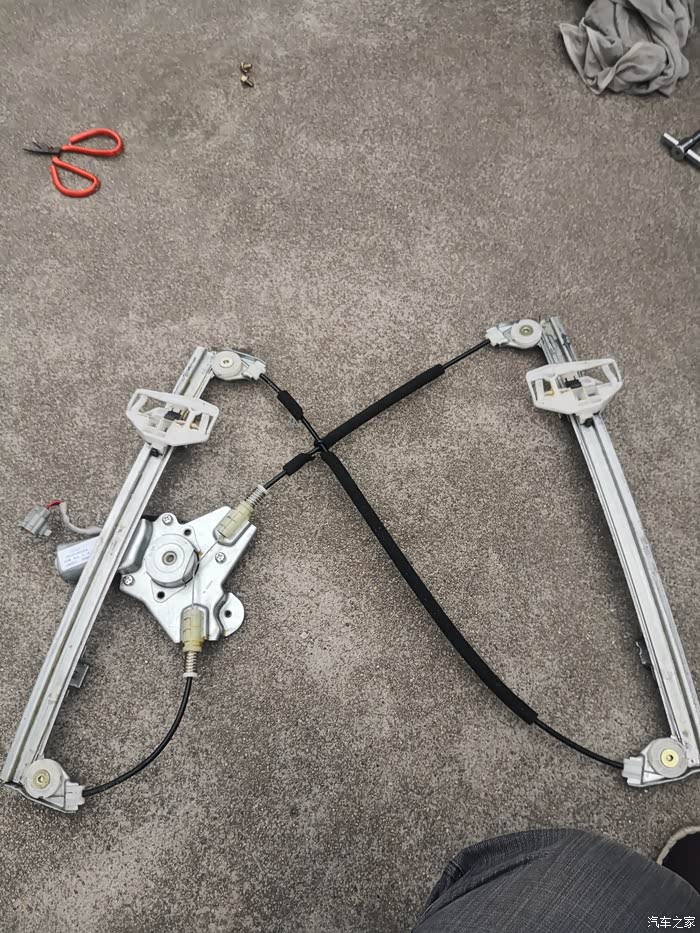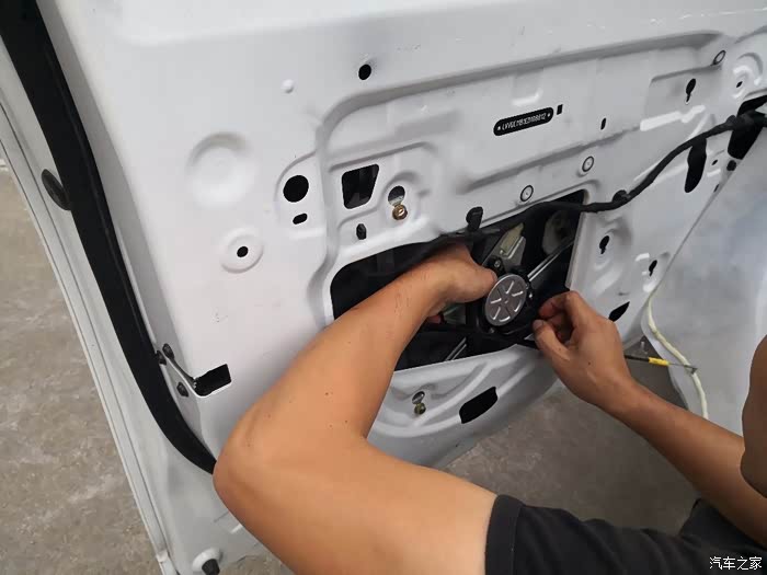 这个时候很关键一步,要把玻璃与卡扣分离,因为我玻璃升的较高,所以手要伸手进去才能操作,这一步弄的很狼狈,慢慢来 二边都取出来,后面就非常顺利了。