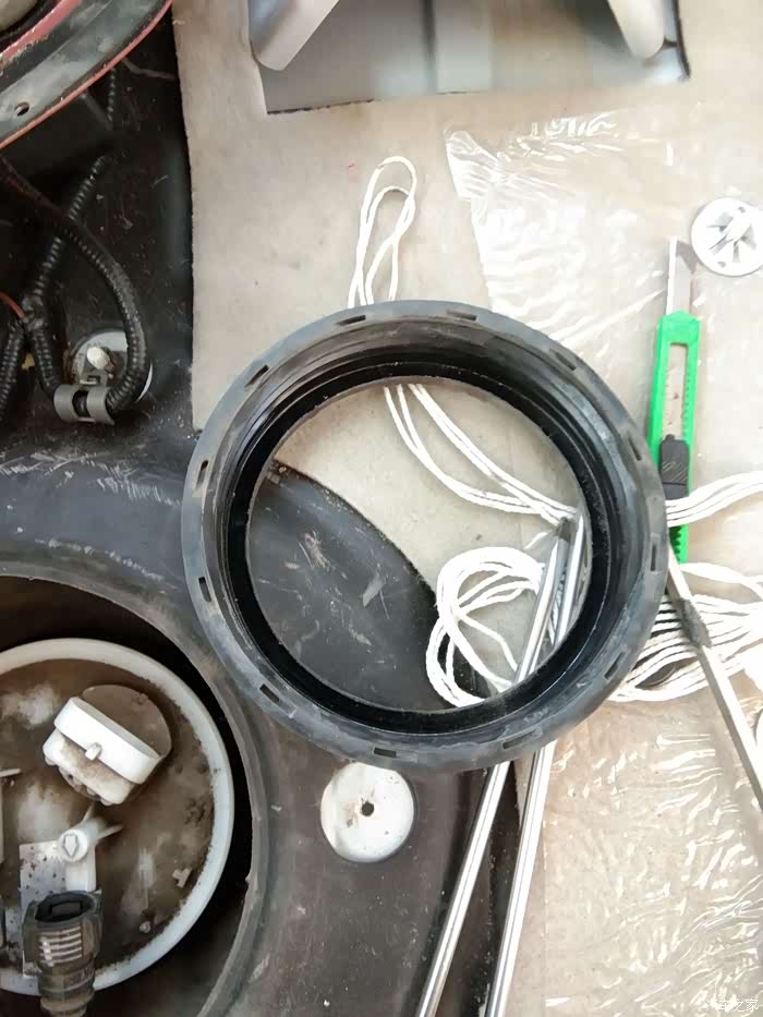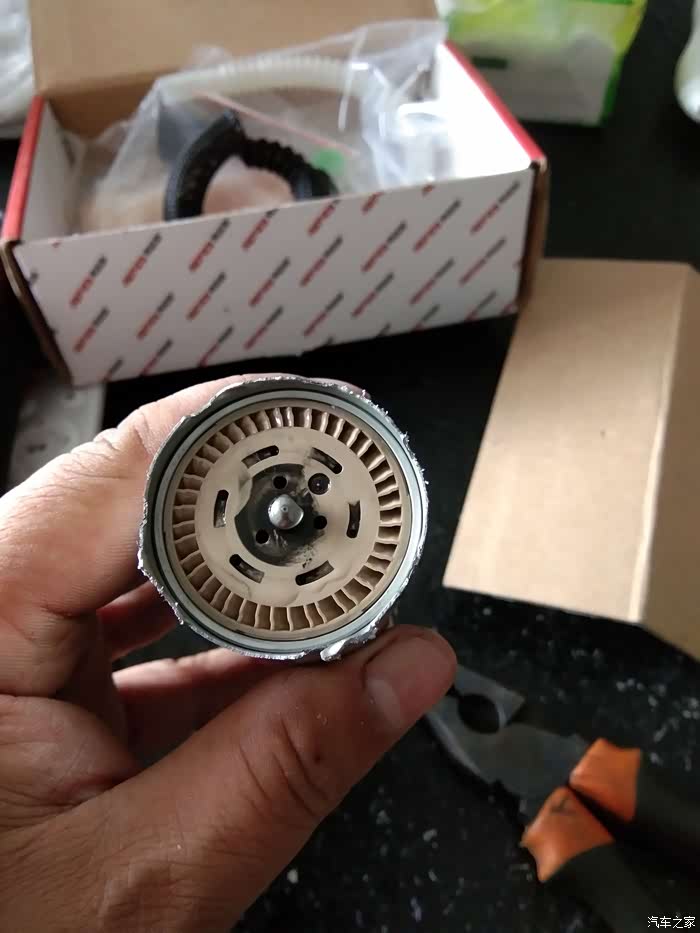 卸下油泵体压盖,这个有点难度。螺纹的,正螺旋。要是两个有力气的男人可以直接拧开。注意不要划手,空间有限。
