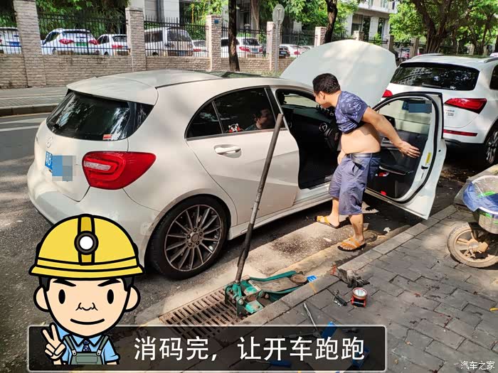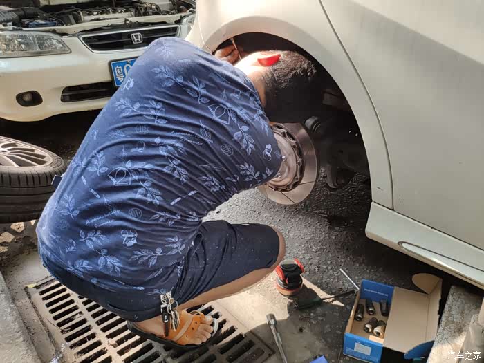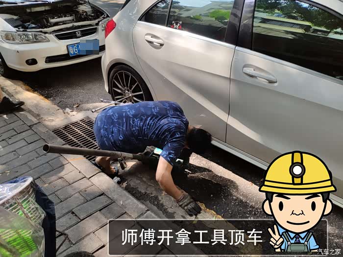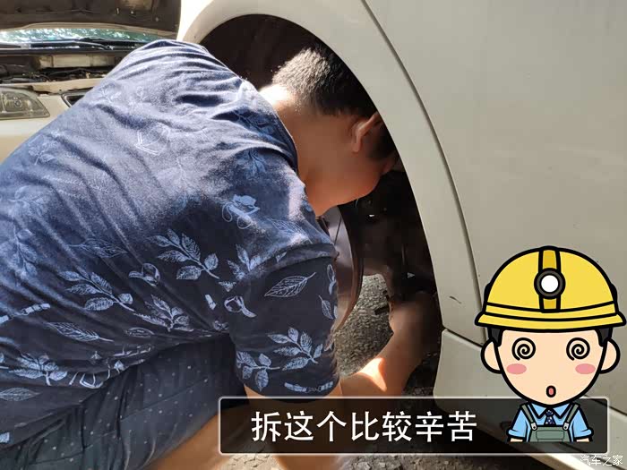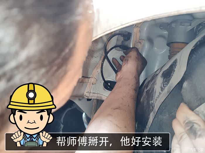 师傅一个人还不好搞定,我在旁边就搭把手吧。我把垫子扯住,师傅腾出手来搞传感器。
