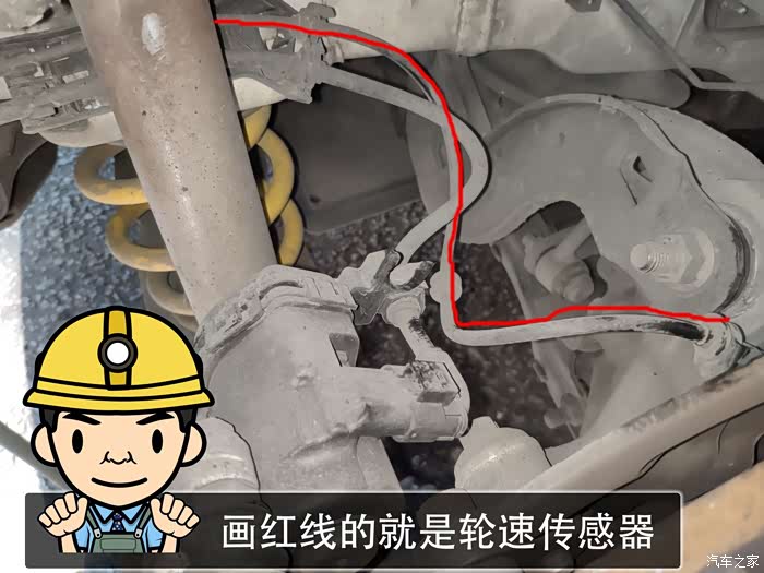 通过师傅指点,终于知道了,画红线哪个就是传说中的轮速传感器。