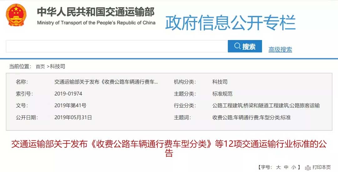 交通运输部发布《收费公路车辆通行费车型分类》行业标准的公告,要求按车(轴)型收取通行费,并且新的车型划分标准已正式发布,即将进入施行阶段!