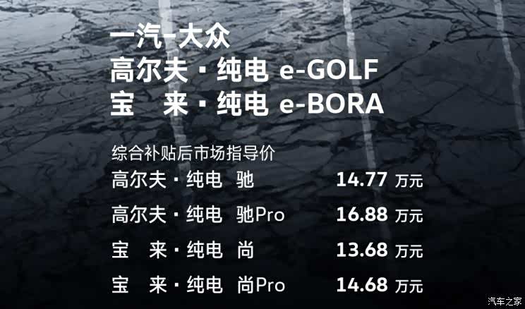08. 售13.68万起,高尔夫/宝来纯电动版上市
