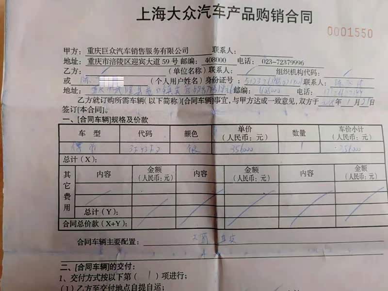 回家后,陈先生翻出了购车合同,在“合同车辆规格和价款”的车型栏上,4S店的销售员竟只孤零零地写着“辉昂”二字,甚至连具体的年款都没有。到此时,陈先生竟然都还不知道自己购买的车型是何年何款。