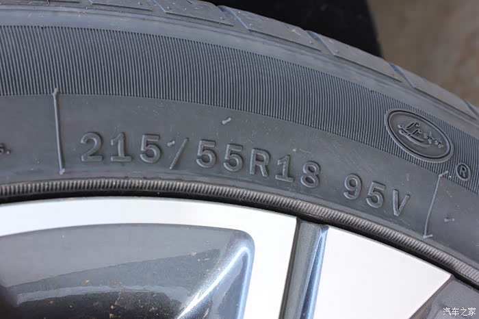 这是我拍的我家缤越的轮胎,轮胎上最重要的信息就是这一串数字,这些数字都表达了什么信息呢?215代表的是轮胎的断面宽度,就是轮胎抓地面的宽度,225毫米。一般的家用车轮胎断面宽度都在200—250毫米之间,这个数值越大,轮胎的抓地性越好,相应的摩擦力和油耗也会增加。有些赛车的轮胎会达到300毫米的宽度,这么宽的轮胎,抓地性更好,安全性也更高。缤越225的宽度对于家用车来说完全够了。55表示轮胎的扁平比,也就是断面高度和断面宽度之间的比值,这个比值越大,轮胎的厚度越大。R是子午线轮胎的英文首字母,子午线轮胎是目前市面上通用的家用车轮胎,几乎所有的家用车都是用的子午线轮胎。18表示的是轮毂的直径。缤越的轮毂直径是18英寸,缤越的备用轮胎不知道大家都用过没有,这个轮胎的数值前面还有一个字母T,它表示这个轮胎是应急备用轮胎,只有在应急情况下使用。后面的数字95是轮胎的载重指数,不同的指数对应不同的载重量。95表示单条论胎载重量为690公斤,也就是说,缤越的整体载重量是690公斤*4,约2700公斤,坐几个大胖子都没问题。V表示轮胎的速度等级,也就是能开多快。V级轮胎的最高时速是240公里,更快的还有W级和Y级,Y级的一般只有赛车上使用,最高时速300公里。一般高速限速都在110公里左右,所以缤越使用的V级别轮胎是不会因为超速爆胎的。