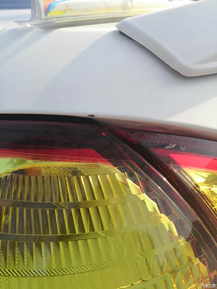 每隔一段时间我都会检查下车上有没有掉漆的地方,应该是被路上的石子弹跳起来蹦的。这次尾灯上面还有前机盖上面有几处,顺便拿补漆笔搞一下。