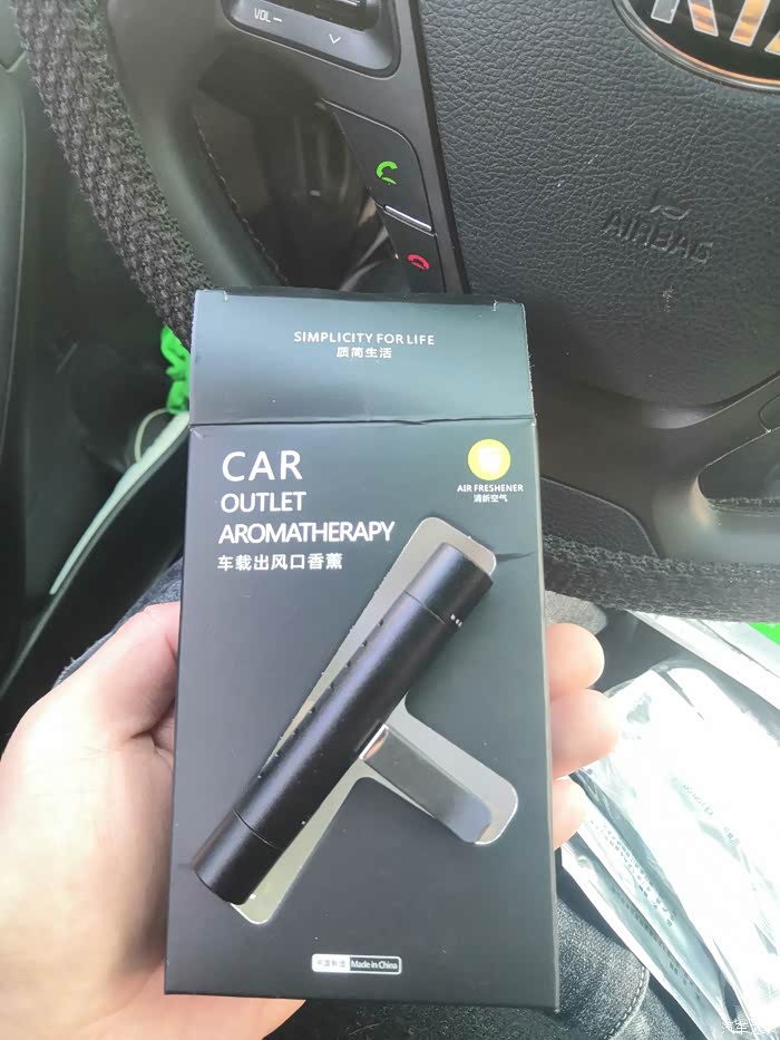 刚刚网购的车载香薰,价格不贵,不到20元。今天也放上用,最近车内总是有股怪味。放上后应该能有改善。