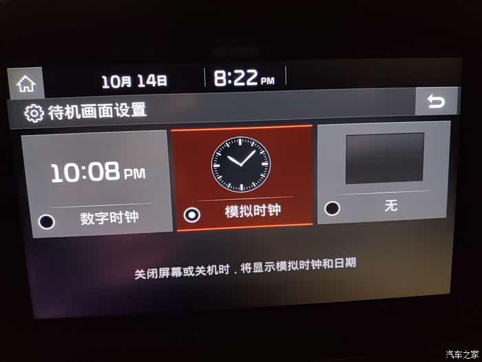 待机或关闭屏幕后显示的画面选择,只有时钟或无。