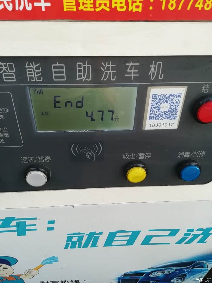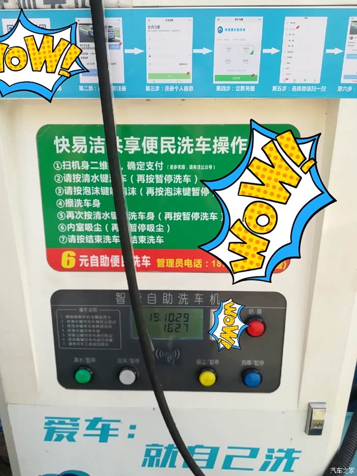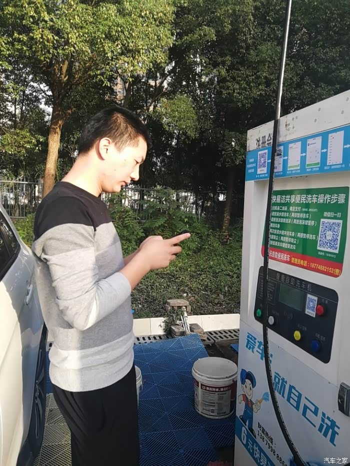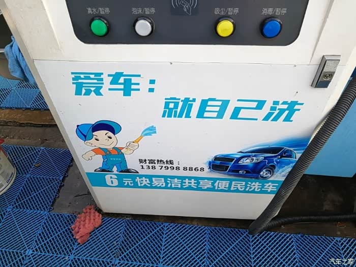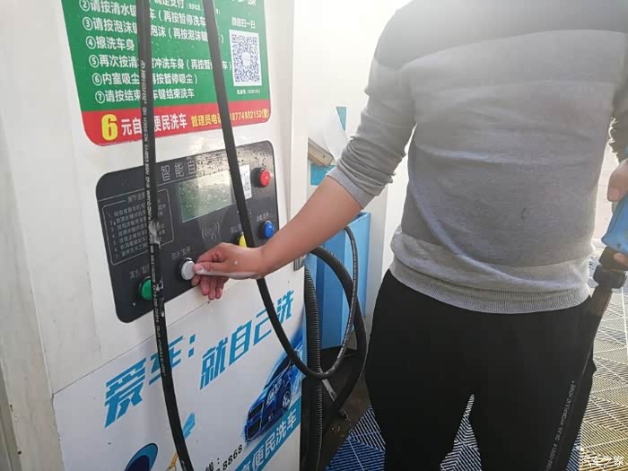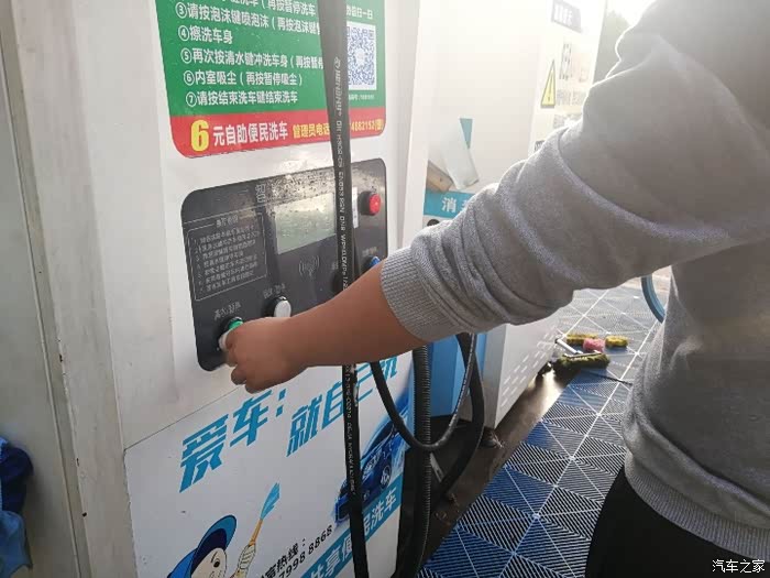 先把小炫停好,第一次来自助洗车,没弄过,在机器面前看指示看了几分钟才弄明白操作流程。还得先注册账号,注册完先充个20大洋(最低限充),开始洗车