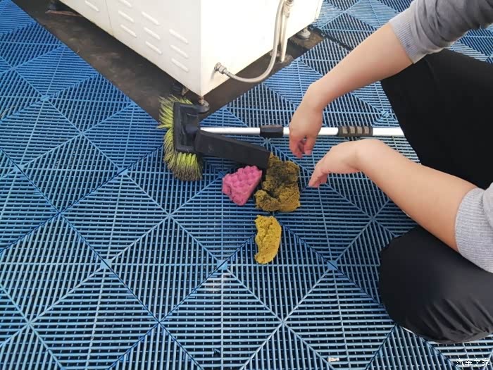 冲了泡泡就可以开始擦拭车身了,老板提供的拖把,海绵块都坏的差不多,还好还有块好的能用。正式开始给小炫搓澡