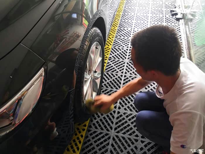 最后是轮毂轮胎,老板清洁轮毂十分认真,每个轮辐和边角都一干二净。