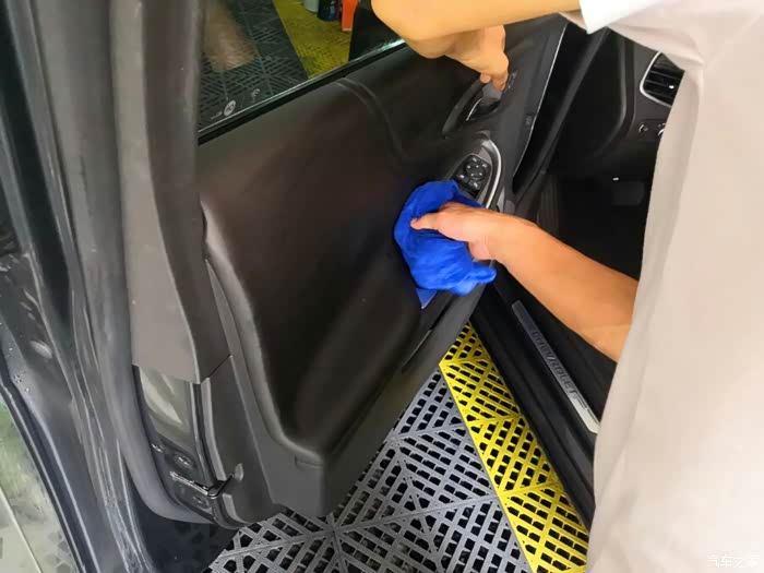 擦内饰,擦内饰的抹布和车外不能用同一个,因为车外的抹布擦过车身后含水量比较大,容易让车内的真皮内饰和电子部件出现问题。