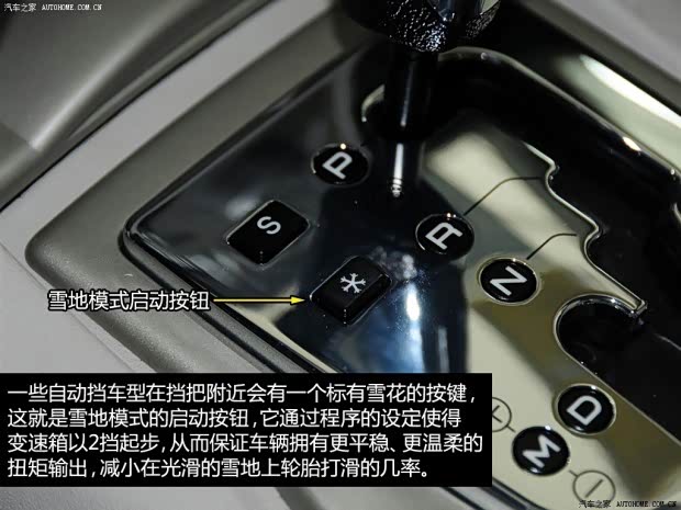 自动挡车型可以直接选择雪地模式来起步,雪地模式是通过程序的设定,让变速箱以2挡起步。另外还有一种方法是可以先用倒挡让车辆移出原地,然后再换成前进挡,这样做有时也可以解决起步困难的问题。
