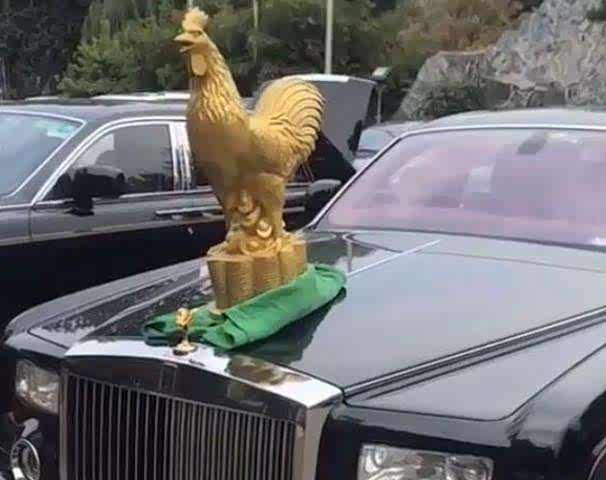 同时也让人不禁想起了前段时间一位劳斯莱斯车主花60万将车的立标改成了一只25斤重的“金鸡”,相比之下将猪一字马绑在车顶更加吸引眼球。