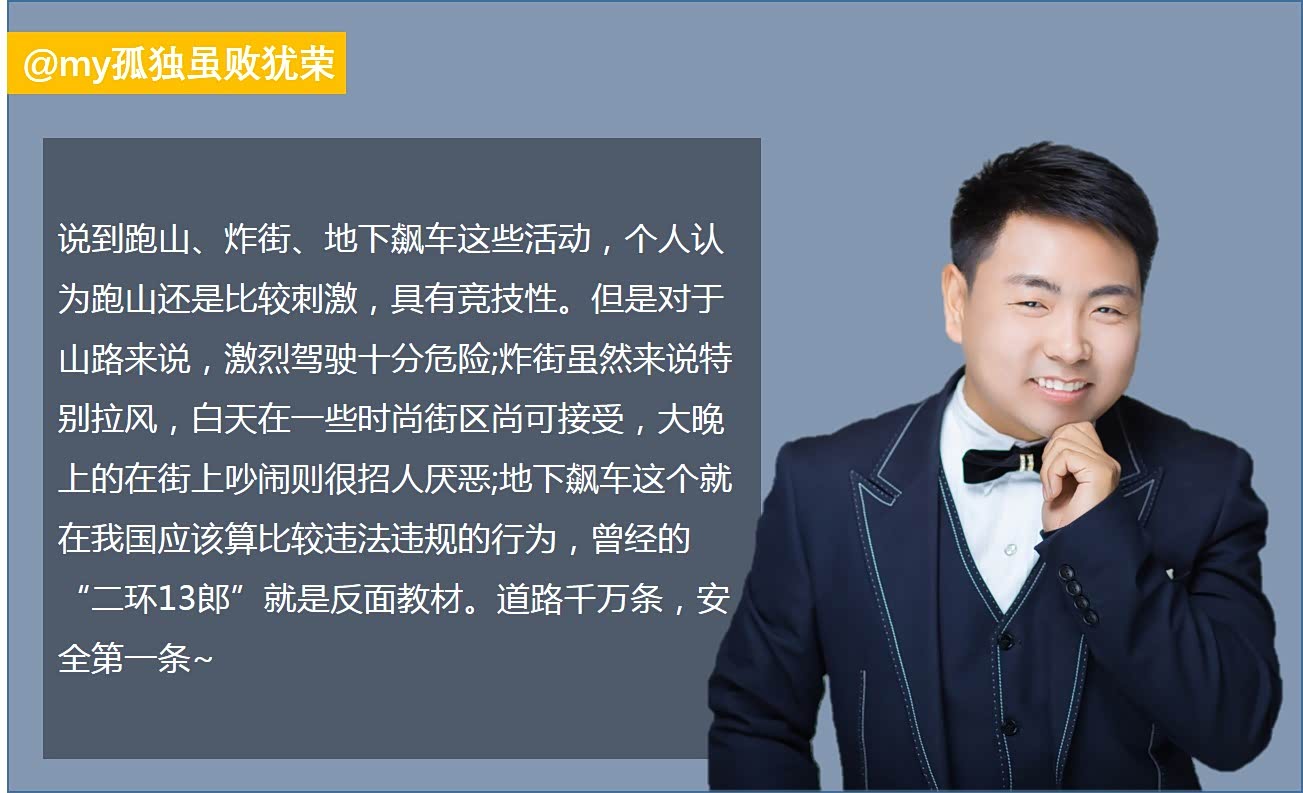 导语:《头文字D》是不少车友爱上汽车的起源,但是对于跑山或者跑街这些行为,大家的看法可能不尽相同,我们采访了一些车友,他们这么说...